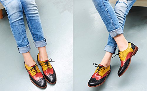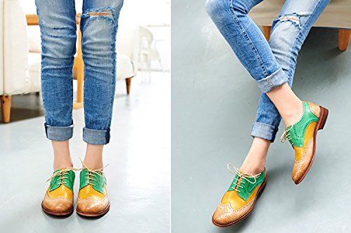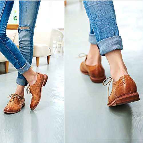 | (Odema)/Women's/Lace-Ups/DIRECT FROM USA/Odema Women's Leather Oxfords Perforated Lace-up Wingtip Low Heel Carving Brogue Dress Shoes Oxfords |