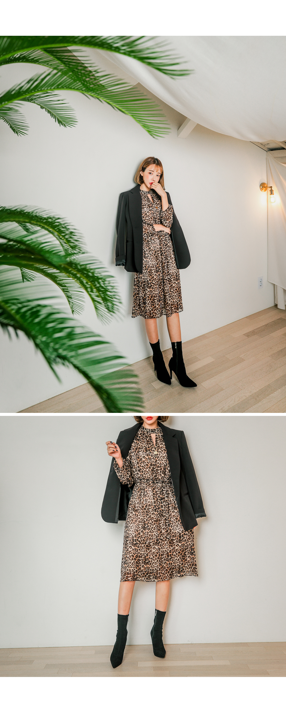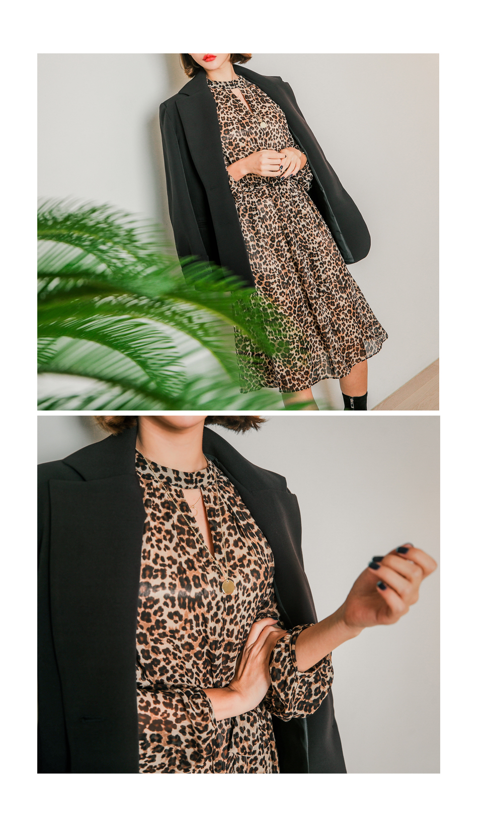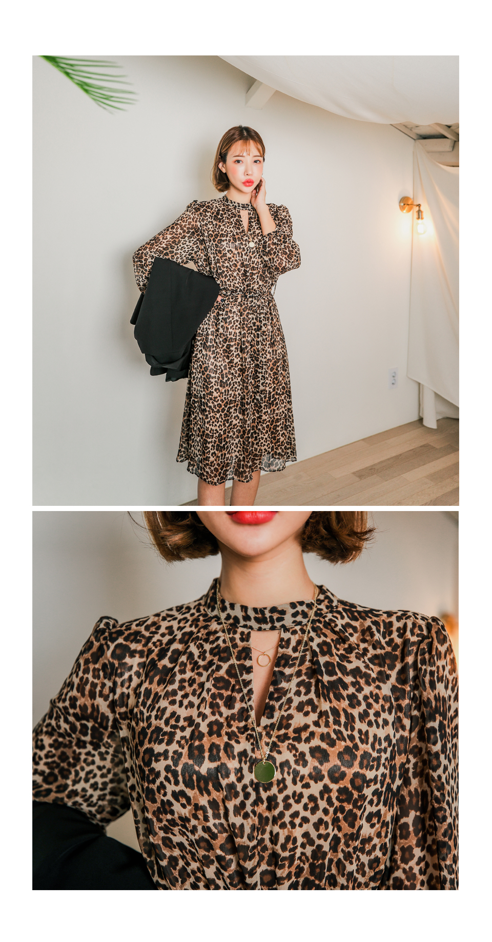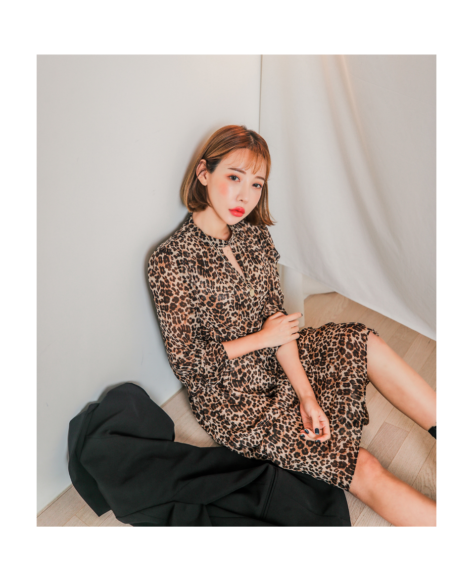 앞쪽 넥트임과 레오파드 패턴이 섹시한 느낌을 주면서