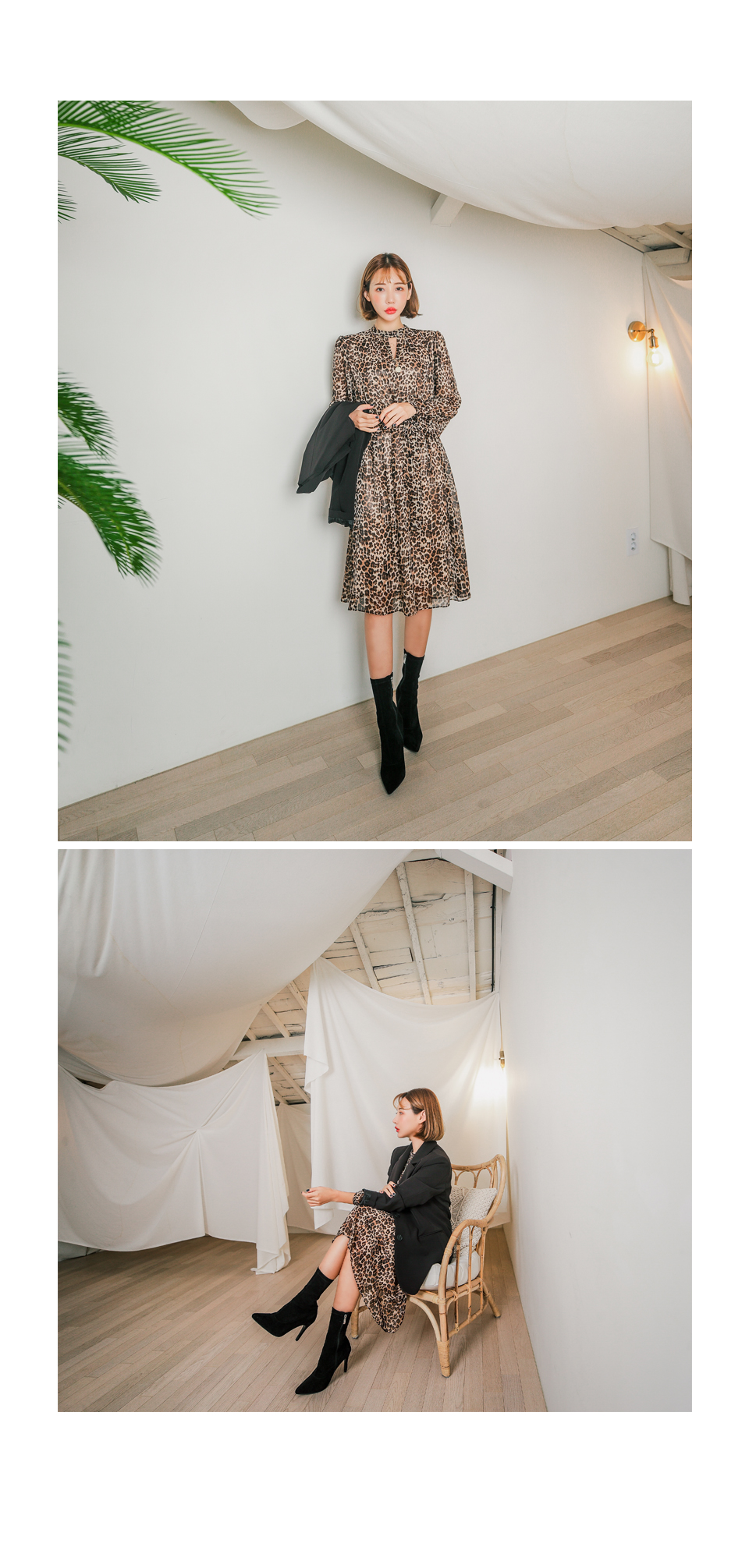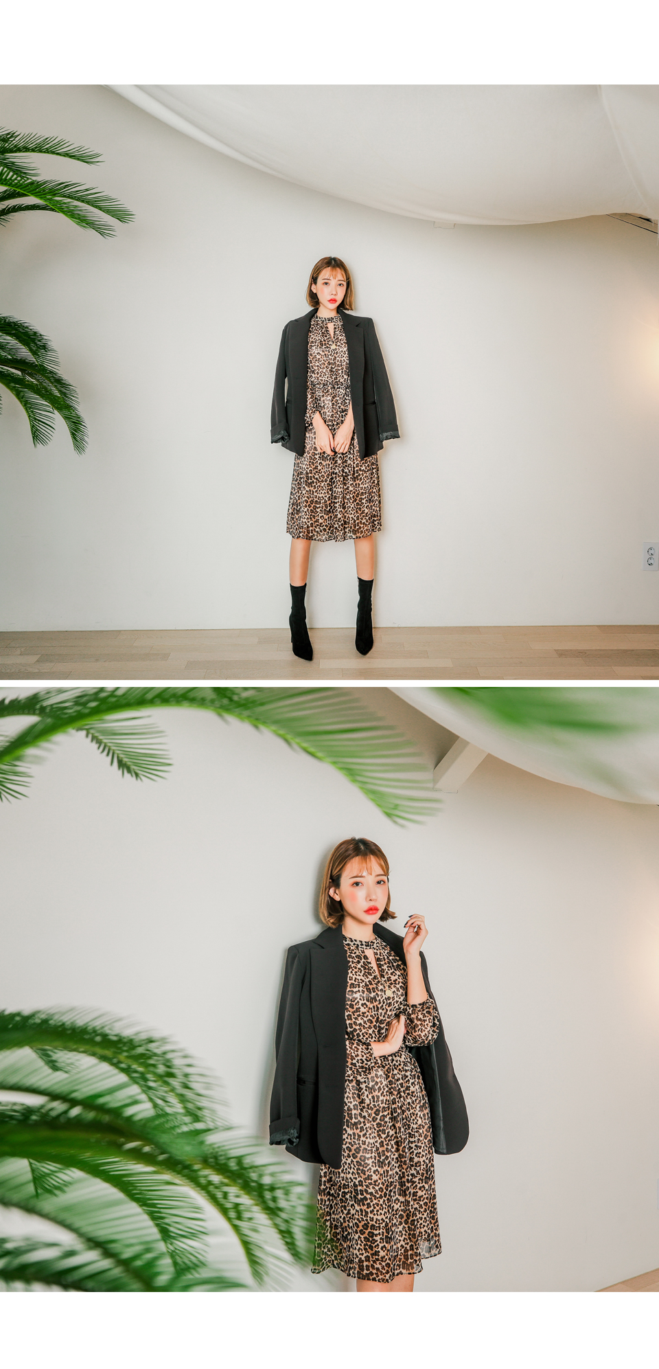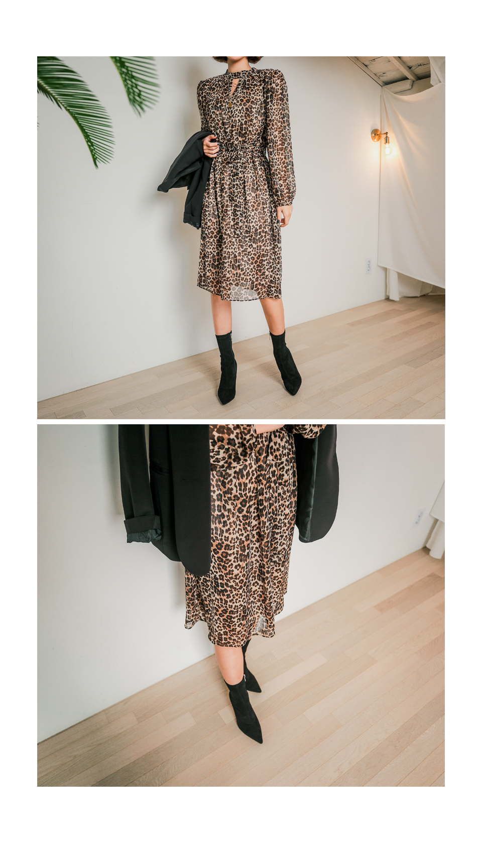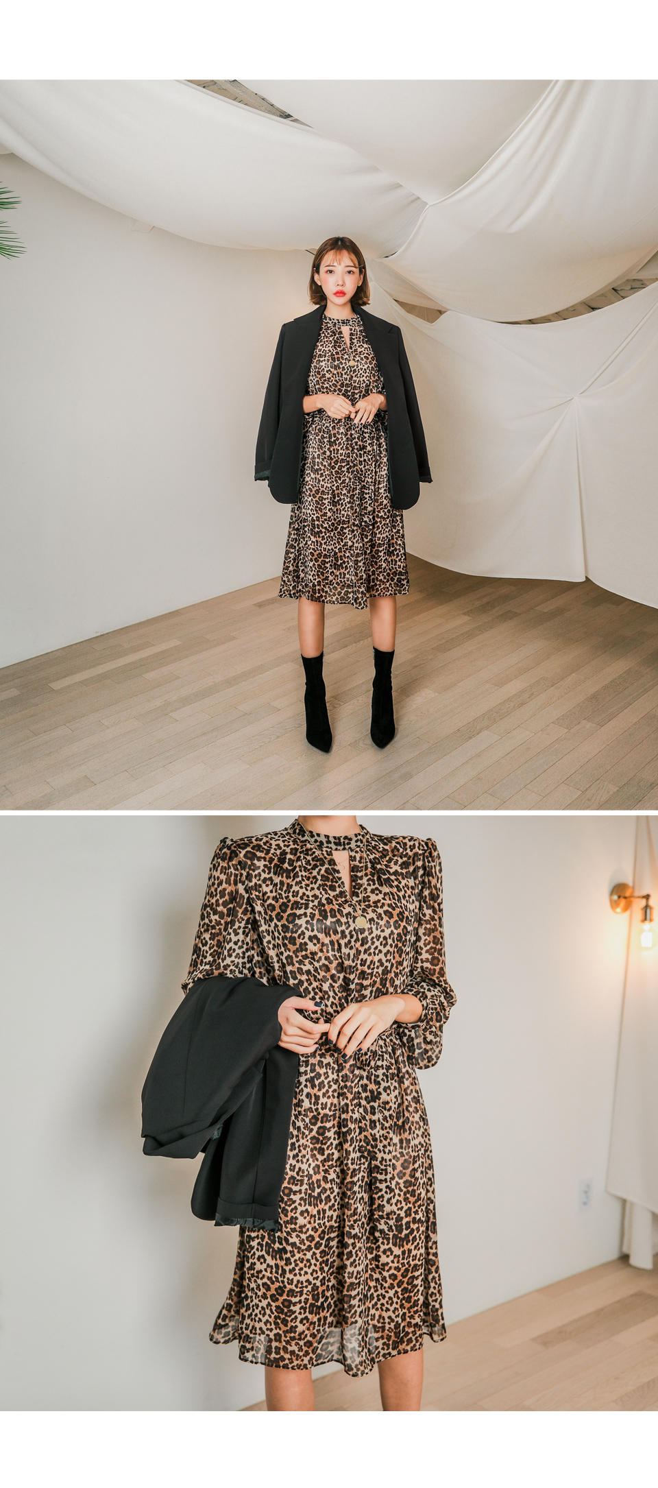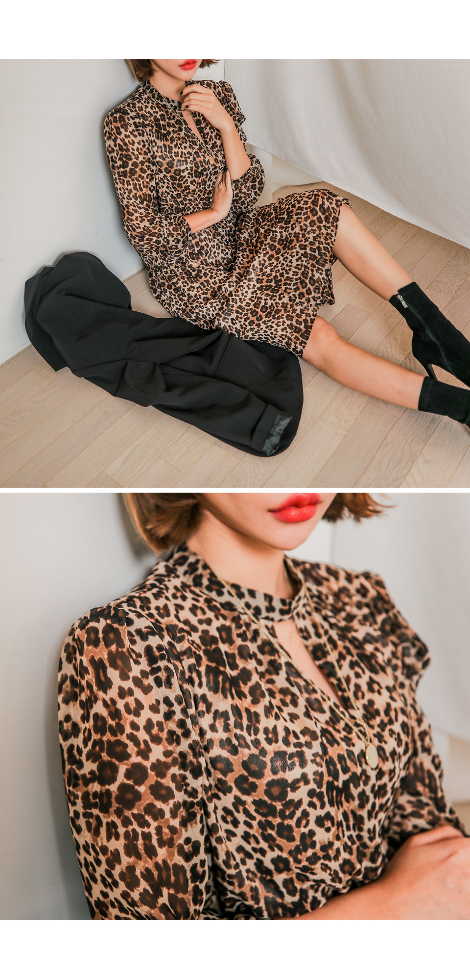앞쪽 넥트임과 레오파드 패턴이 섹시한 느낌을 주면서