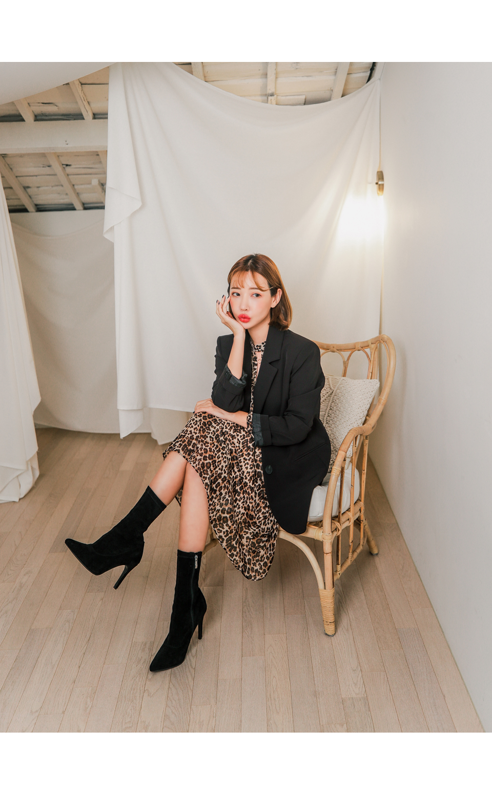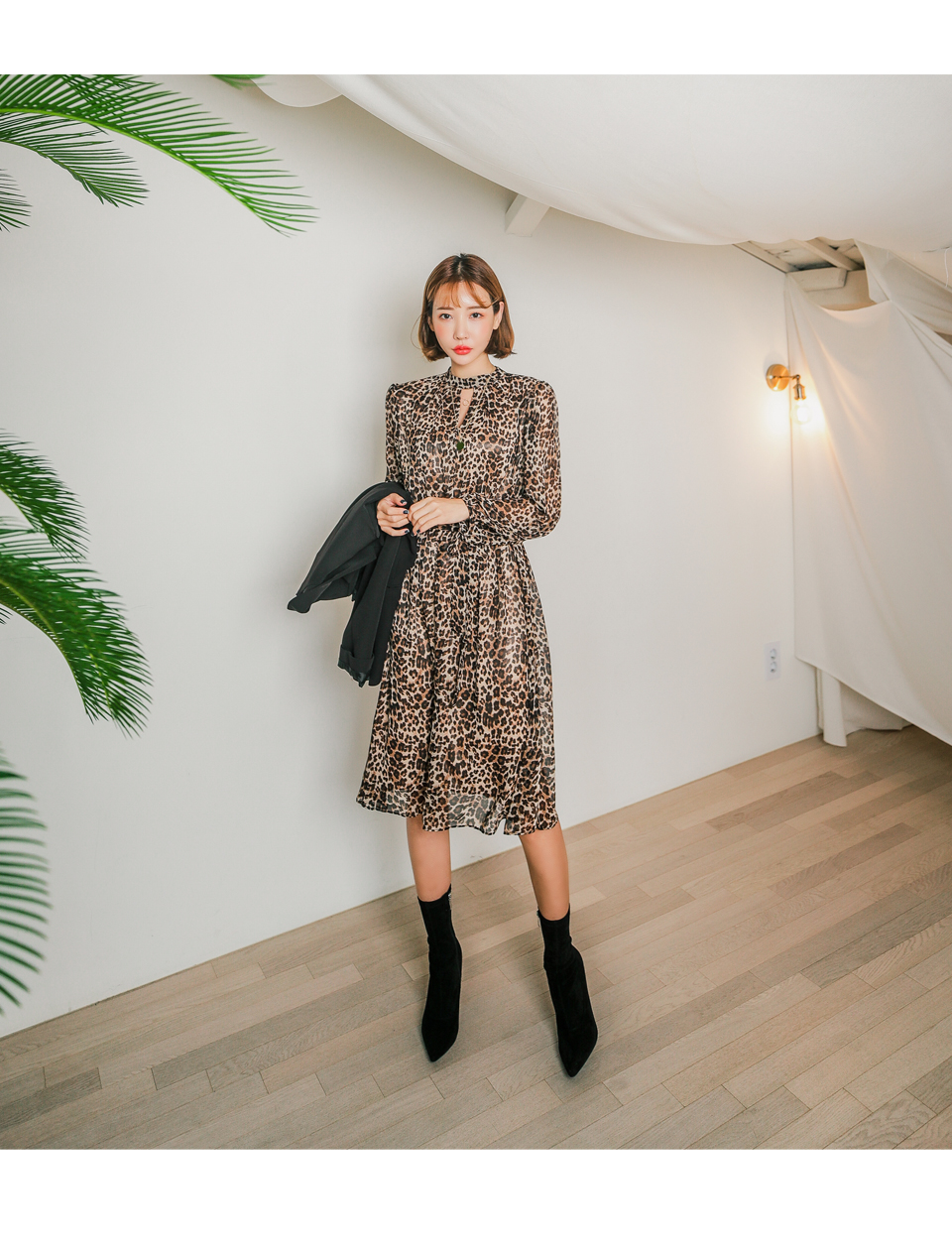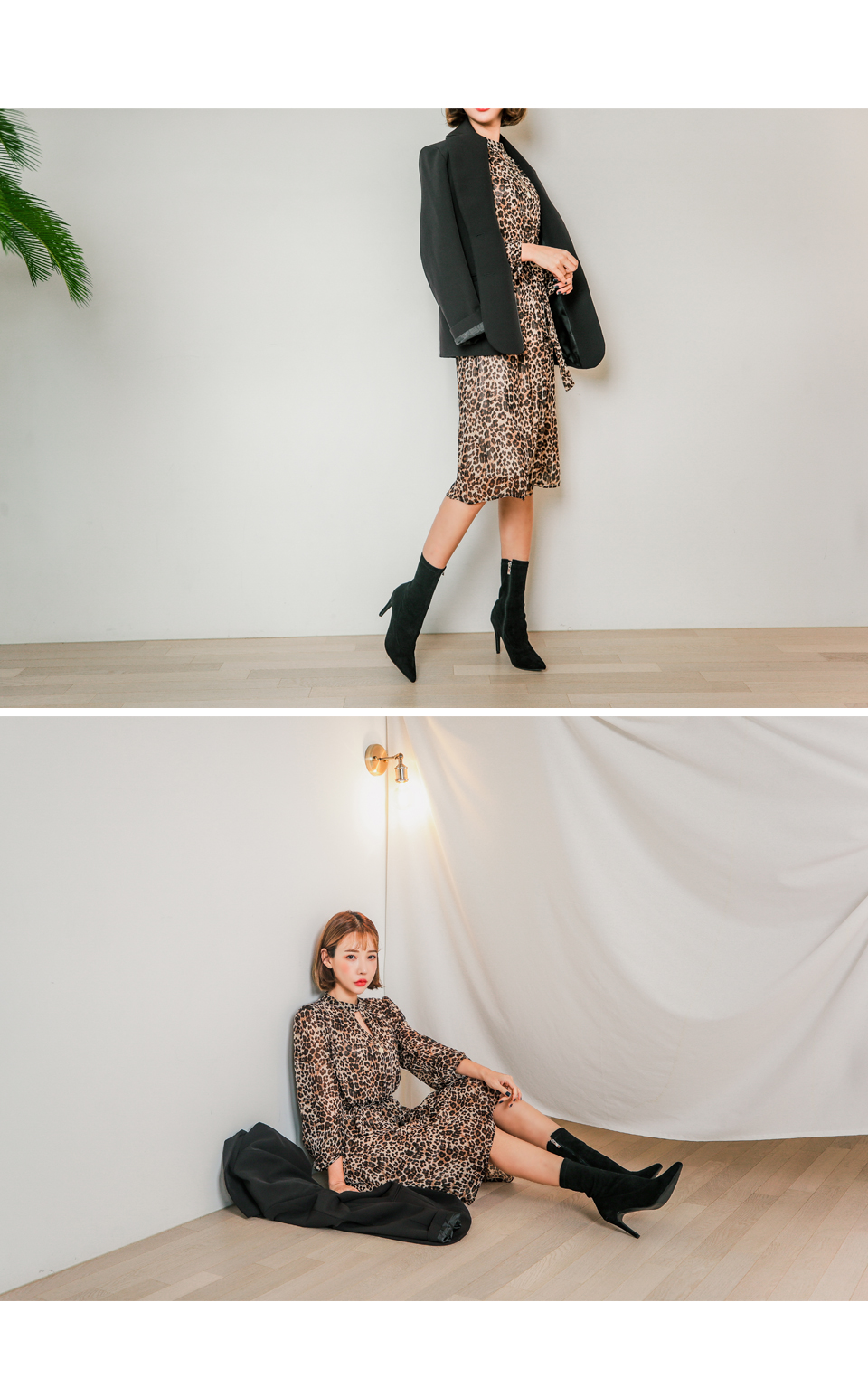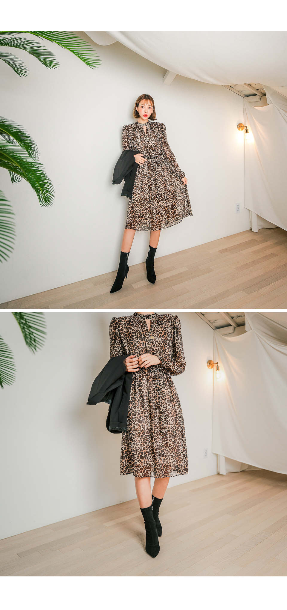 앞쪽 넥트임과 레오파드 패턴이 섹시한 느낌을 주면서