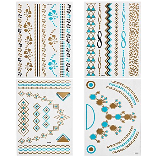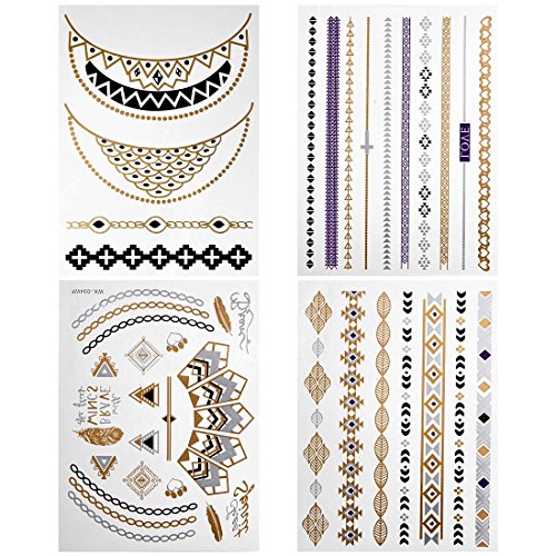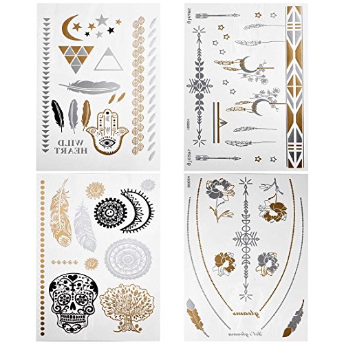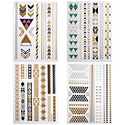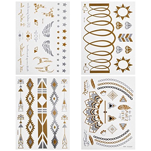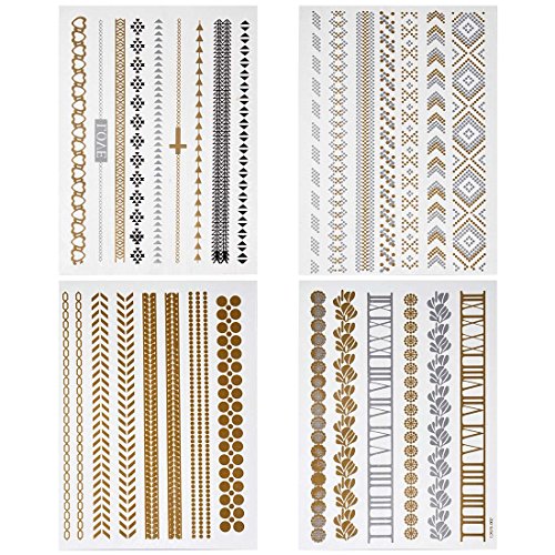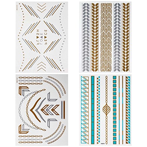 -. Binding : Misc. -. Brand : b.m.c -. Feature : Be the center of attention with this unique set of shimmering metallic temporary tattoos! / Includes: (4) large sheets with multiple styles of designs. / These temporary tattoos are sized for all parts of the body from fingers to back. / Quick and easy application just cut and apply onto clean skin for beautiful body art! / Shimmer in the day or night with these stylish tattoos! -. Label : Bundle Monster -. Manufacturer : Bundle Monster -. NumberOfItems : 1 -. PackageQuantity : 1 -. ProductGroup : Beauty -. ProductTypeName : BEAUTY -. Publisher : Bundle Monster -. Size : Small -. Studio : Bundle Monster -. Title : BMC Gorgeous 4pc Mixed Metallic Assortment of Temporary Water Transfer Tattoos