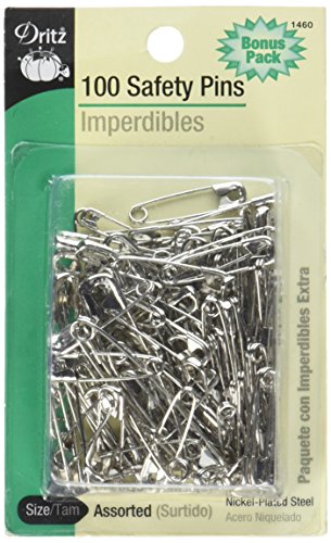Dritz 100-Piece Safety Pins, Assorted Sizes, Nickel Finish