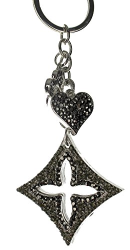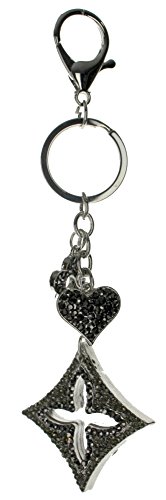 (T Square)/Accessories/Wallets, Money Key Organizers/DIRECT FROM USA/Rhinestone Bling Heart Flower Charm Key Chain Fob Phone Purse Charm Gold Toned