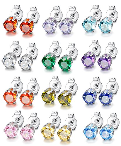 -. Title : ORAZIO[オラジオ]【12色12ペアセット】ジルコニア ピアス スタッドピアス 一粒 レディース イヤリング プレゼント ステンレス製