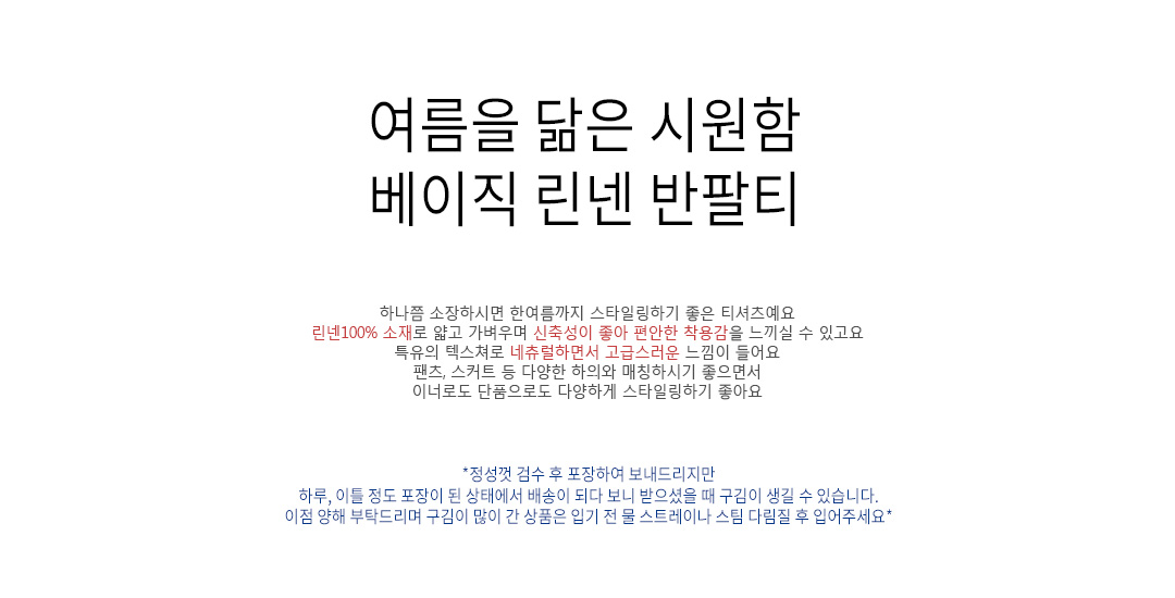 | 소재(Material) | 린넨(linen/)100% | |