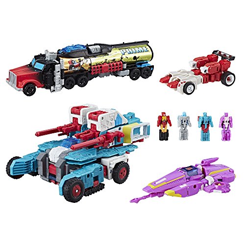-. Feature : Transformers: Generations Chaos on Velocitron 5-figure pack / Comes with 5 figures from each of the Generations Titans Return classes / Figures convert anywhere from 1 to 23 steps / Includes Leader Class Quickswitch figure, Voyager Class Laser P.R.Ime figure, Deluxe Class Autobot Nautica figure, Legends Class Fastclash figure, Titan Master Rodimus P.R.Ime figure, 5 accessories, poster, collector card, and instructions.