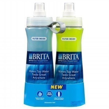 Whether you're at the gym, on your bike or on the soccer field, enjoy great-tasting water anywhere, with a Brita Water Filter Bottle. The water filter, which sits inside the 20 oz. soft-sided bottle, filters as you drink. It reduces particulates as well as the taste and odor of chlorine, often found in tap water. Just fill the squeezable plastic water bottle, screw on the cap, pull up the nozzle and hydrate with cleaner water for pennies per gallon. This filter bottle is BPA-free and dishwasher safe on the top rack, making cleaning easy. For optimum performance, change the water filters every 40 gal. or 2 months. 1 filter can replace up to 300 standard 16.9 oz. water bottles, cutting down on plastic waste. Get great taste, less waste and more savings from Brita.Feature