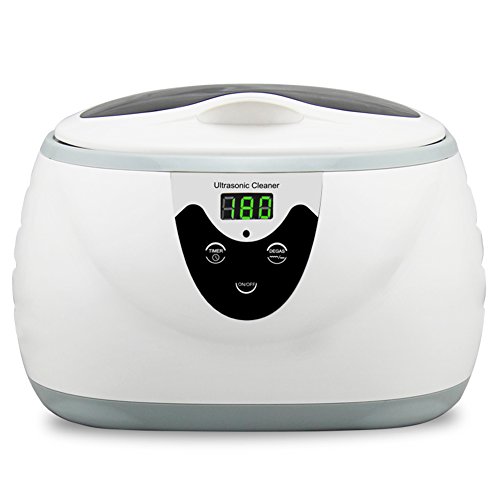 -. Feature : Give You and Your Valuables a Lifelong Guaranteed Protection - a 42,000 KHz generation of ultrasonic sound waves for a powerful yet gentle cleaning to eliminates dirt, grime, dust and bacteria to polishes and sanitizes your valuables including jewelry,coins,watches,eyeglasses,diamond,rings,razors,dentures and ect. / Digital display with 5 different preset time cycles(90, 180, 280, 380, & 480 seconds )to choose from depending on how dirty the items are. And it can shut-off automatically to conserve electricity. / The ultrasonic jewelry cleaner machine is multi-purpose for family,jewelry shop,glasses shop,watches shop,laboratory and office tec.The ultrasonic jewelry cleaner machine have your valuable items looking brand new again. / Easy to operate-Just fill up the ultrasonic jewelry cleaner with water, add a few cap of our liquid jewelry cleaner (the amount of cleaner depends on the dirtiness of the jewelry), place your jewelry items into the machine, turn it on, and walk away. / The stainless steel chamber holds 20 oz (600 mL) Capacity - With interior dimensions of 6.10x3.73x2.01 inches((L x W x H), both small and large jewelry and other items alike can be fully submerged and thoroughly cleaned .and the stainless steel tank stays clean.
