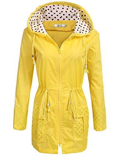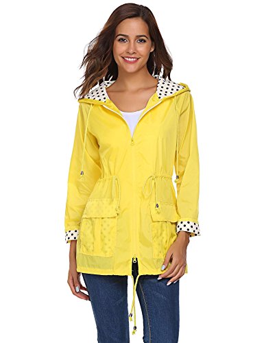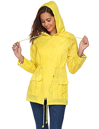 Unibelle Waterproof Lightweight Rain Jacket Active Outdoor Hooded Raincoat for Women, Yellow, Medium