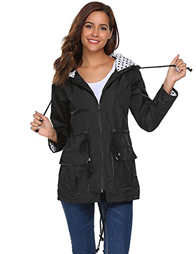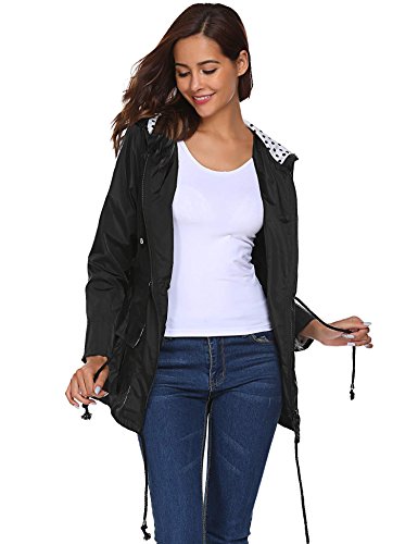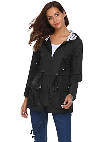Unibelle Waterproof Lightweight Rain Jacket Active Outdoor Hooded Raincoat for Women, Black, Medium