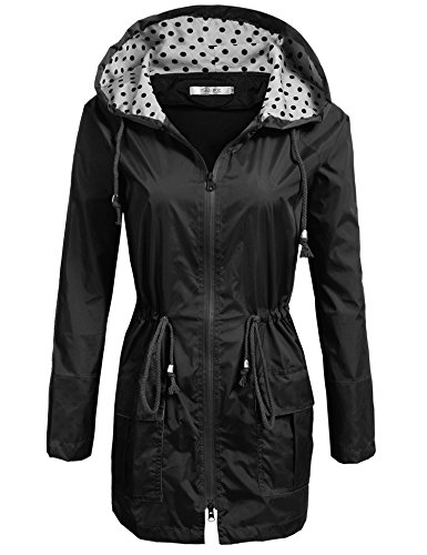 Unibelle Waterproof Lightweight Rain Jacket Active Outdoor Hooded Raincoat for Women, Black, X - Large