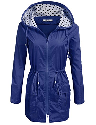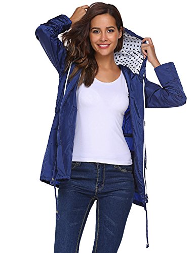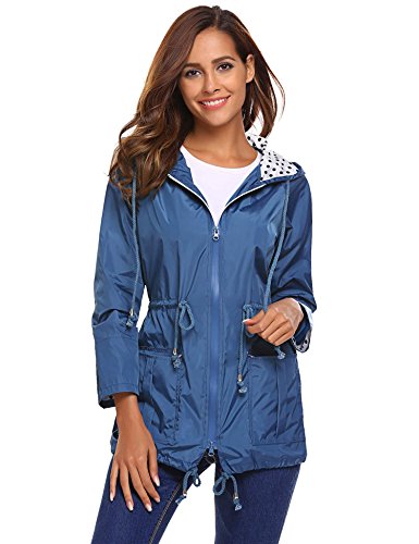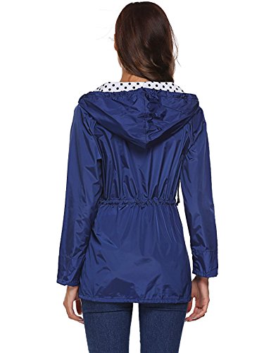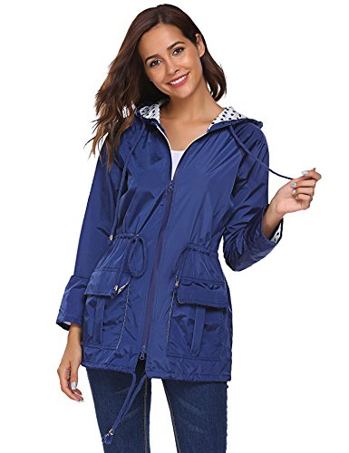 Unibelle Waterproof Lightweight Rain Jacket Active Outdoor Hooded Raincoat for Women, Navy Blue, Medium