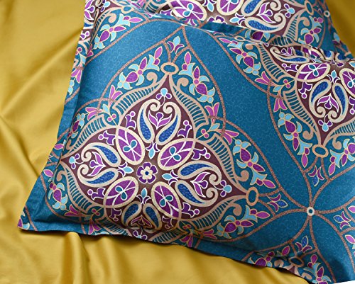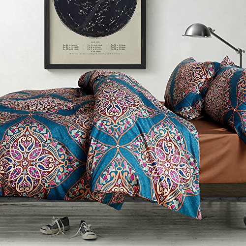 Damask Medallion Luxury Duvet Quilt Cover Boho Paisley Print Bedding Set 400 Thread Count Egyptian Cotton Sateen Vibrant Bohemian Pattern (Queen, Teal)
