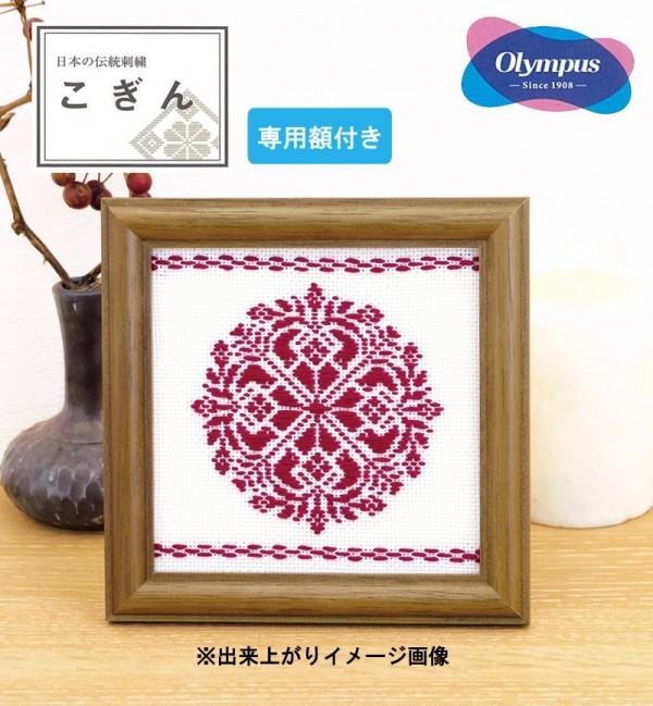 | セット内容 | オリムパスこぎん糸(えんじ)(194) オリムパスNo.1100布(コングレス)白(6) 専用額 (W-20) こぎん針 図案付説明書 |