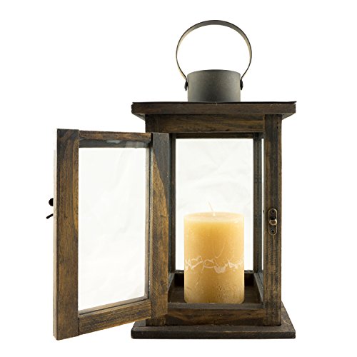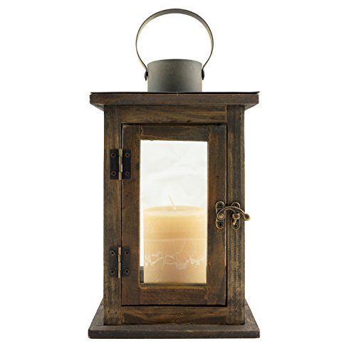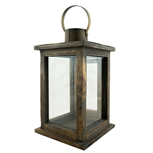 -. Title : Stonebriar Rustic Wooden Lantern, Vintage Wood & Metal Design, Small