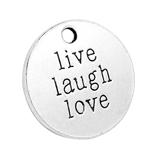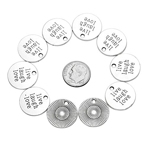 20 Pieces Live Laugh Love Inspirational Medallion Charm Findings for Jewelry Pendant Necklace Making 20mm