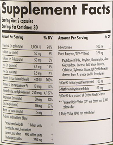 ReleaseDate : 2015-04-02 Studio : Gluten Free Palace - HPC Publisher : Gluten Free Palace - HPC Binding : Health and Beauty Product Description Gluten Intolerance Essentials is the only supplement specifically formulated for someone on a gluten-restricted diet due to celiac disease, gluten intolerance, gluten sensitivity or as a lifestyle choice. One capsule twice daily provides all of the vital nutrients the body is missing when on a gluten-restricted diet. Each capsule contains a precise doctor-approved formulation of superior, high-quality natural ingredients to provide the essential vitamins, minerals and amino acids that are commonly deficient in those that follow a gluten-free or gluten-restricted diet. Also included are essential prebiotics, probiotics and key enzymes associated with optimal gastrointestinal health. Those taking the supplement as directed are likely to begin to feel better, and may reduce their risk of disorders that have been known to be associated with gluten intolerance, including celiac disease, and a gluten-restricted diet; such as anemia, intestinal cancer, osteoporosis, depression, infertility, menstrual disorders, nerve damage, thyroid disease and arthritis that may develop over time if not properly addressed. With Gluten Intolerance Essentials you can be confident you're giving your body the resources it needs to experience optimal living each and every day. Gluten Intolerance Essentials helps with nutrient absorption and replacement, prebiotic/probiotic support, digestive healing and enzyme support, improved bone health, advanced immune support, energy enhancement and antioxidant support! Give your body the essential nutrients for a gluten-restricted diet. 0