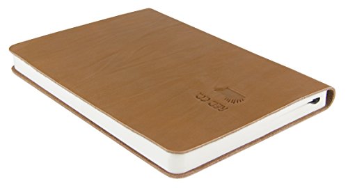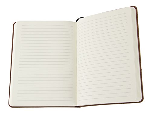 The cover is made of genuine leather. It has 240 thick lightly lined ivory pages (120 sheets). The ruling is close to college ruled format. It has 1/4" (6.5mm) spacing between ruling lines.