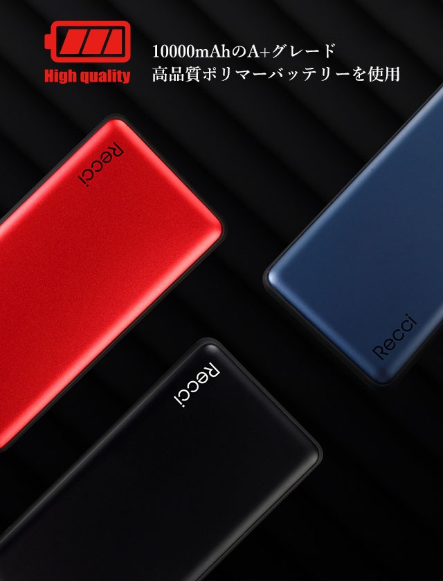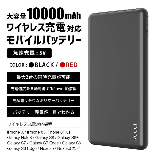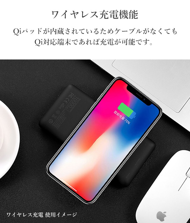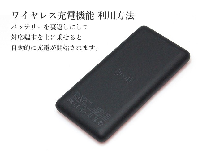 | カラー:ブラック、レッド 入力:5V / 2A (max) 出力:5V / 2.4A (max) ワイヤレス箇所出力:5V / 1A (max) バッテリー容量:10000mAh サイズ:縦68.6mm × 横135mm × 厚さ15.2mm 重さ:195g |