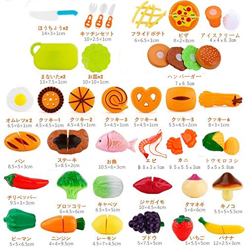 「あそびながらの知育」明るい色と色々な形は、子供たちに色知覚能力と想像力を養うことができます。まだ、果物を切ることで手と脳の協調能力を高まることもできます。男の子も女の子も適用できます。