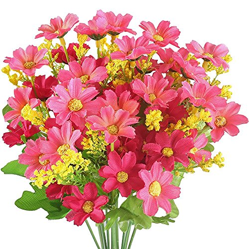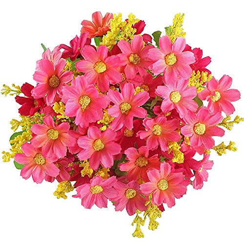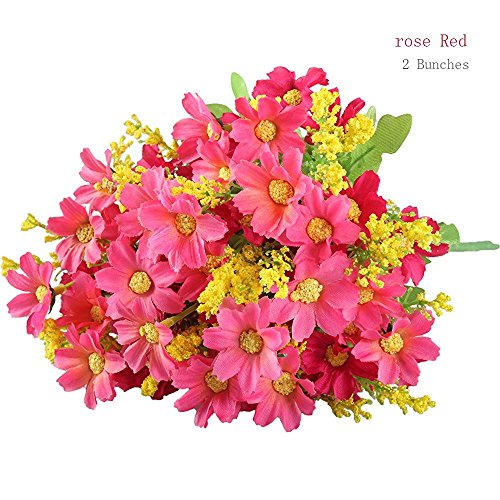 SunAngel 2 Bunches Artificial Mini Daisy Flowers Each Bouquets 28 Heads Silk Arrangements Bridal Home DIY Garden Office Dining Table Wedding Decor (Rose pink)