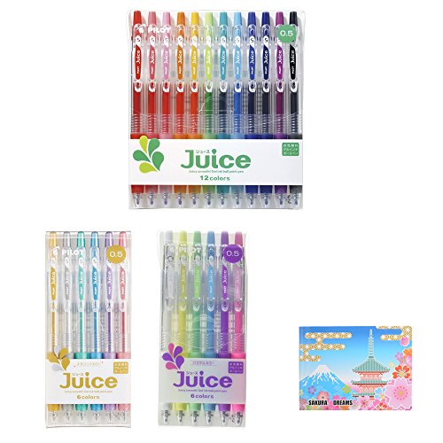 Pilot Gel Ballpoint Pen Juice Bundle Set , 12 Colors Set 0.5mm ( LJU120EF-12C ) + 6 Pastel Colors Set 0.5mm ( LJU-60EF-6CP ) + 6 Metallic Colors Set 0.5mm ( LJU-60EF-6CM ) + 5 Colors Sticky Notes