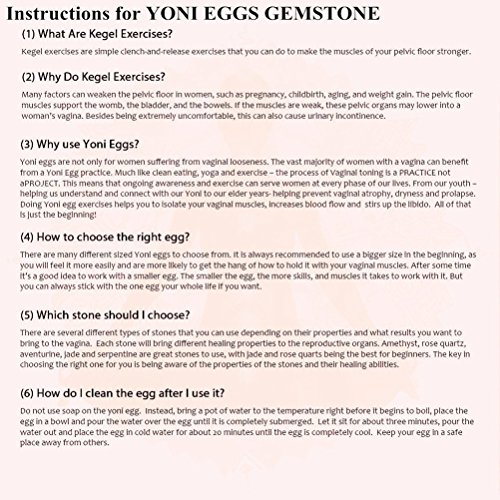 - Why choose us?100% Natural Rose Quartz. Have perfect 3 sizes in one pracel-- Big size: About 45 x 30mm/1.8'' x 1.2'', Medium size: About 40 x 25mm /1.6'' x 1'', Small size: About 30 x 20mm/1.2'' x 0.8''. The average person would use a medium size egg, as a small egg may be too small to feel within the vagina and one must feel the weight in order to contract the muscles to keep it in place.Large yoni eggs are good for women who have had children