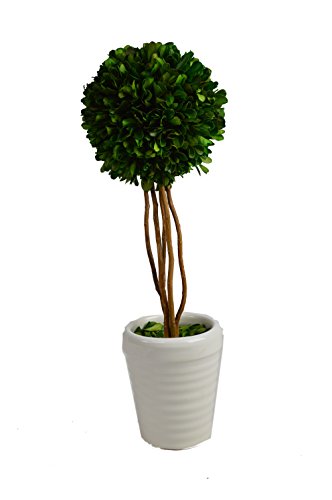 - Boxwood Ball topiary plant with natural twig stem in decorative White pot; measures approximately 21-inches tall