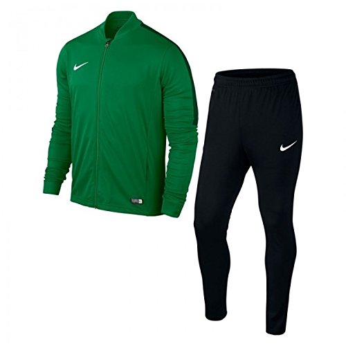 Toller Look und top Tragekomfort! Funktioneller Trainigsanzug für den Fußballsport: Der Nike Academy 16 Knit Tracksuit 2 ist für die Mannschaft perfekt geeignet. Jacke und Hose bestehen aus gestricktem Material und sind ausgestattet mit der Dri-FIT Funktion. Größenauswahl-Hilfe: Model mit 190 cm Größe und 90 kg Gewicht trägt Größe LGrößenauswahl-Hilfe: Model mit 180 cm Größe und 74 kg Gewicht trägt Größe MGrößenauswahl-Hilfe: Model mit 173 cm Größe und 60 kg Gewicht trägt Größe SEigenschaften Jacke: Material: 100% PolyesterPassform - Fit: Körpernahe PassformGrößenflag: Fällt normal ausPflegehinweise: Maschinenwäsche, keinen Weichspüler verwendenGesamtlänge/Rückenlänge: 76 cm bei Größe L Atmungsaktives Dri-FIT-Material leitet Feuchtigkeit vom Körper weg, so dass dieser kühler und trockener bleibt: Schneller Feuchtigkeitstransport nach außen. Hält den Körper angenehm trocken. Das Dri-FIT Funktionsmaterial sorgt für raschen Feuchtigkeitstransport von Ihrer Haut zur Gewebeoberfläche zur Verdunstung und hält so Ihren Körper angenehm trocken Kontrast-Einsätze an den Schultern/Oberarmen sorgen für StyleHochgeschnittener Ripp-Kragen schützt Deinen Hals vor Kälte Durchgehender Reißverschluss mit RV-Garage als Schutz gegen Reibungen am HalsDer Reißverschluss ist innen verdeckt Kordelzug am Taillenbund auf der linken Seite für eine optimale AnpassungRipp-Bündchen der Armausgänge garantieren einen perfekten Sitz Seitliche Reißverschluss-Taschen verwahren Deine Kleinigkeiten: An beiden Seiten jeweils eine mit Mesh-FutterGestickter Swoosh auf der rechten Brustseite Authentic Football Textil-Label auf der Vorderseite links unten angenäht Dri-FIT Logo auf der Vorderseite rechts unten gesticktEigenschaften Hose: Material: 100% PolyesterPassform - Fit: Körpernahe PassformGrößenflag: Fällt normal ausLeibhöhe: Normal Verschluss: Kordelzug innen Pflegehinweise: MaschinenwäschFeature