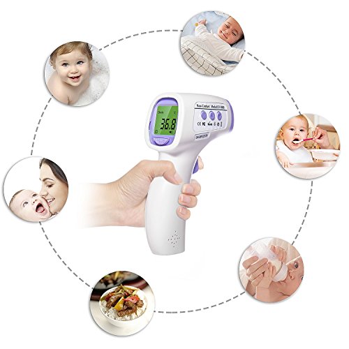 - NOT ONLY CAN MEASURE BODY TEMPERATURE,but also can measure the temperature of surface, room, bath water, food, baby milk etc. with clock function.