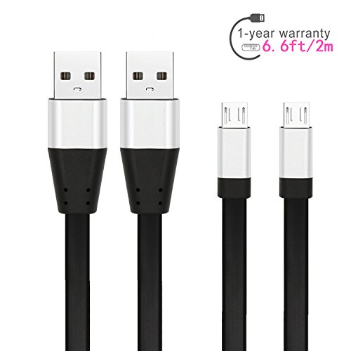 -. Title : Flat Noodle Micro USB Data Sync Charger Cable (2PACK-6.6FT/2M) Aluminum Head Connector for Samsung S6edge S7edge Note5 HTC LG Nokia Motorola HUAWEI and more(Black)