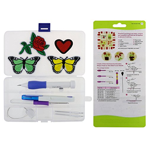 - ❤ PERFECT PUNCHE SET - Embroidery punch kits provides the dedicated needles and heart-shaped, rose-shaped and butterfly-shaped embroidered patterns.Come with 1 adjustable punch needles, 3 different size needles, 4 threaders and 1 extra magic emmbroidery pen embroidery to meet variety of needs. Besides, Fixget Embroidery Punch Needles coming with a plastic container for storage of all kinds of accessories and small items. which makes easily to store these embroidery punch set.