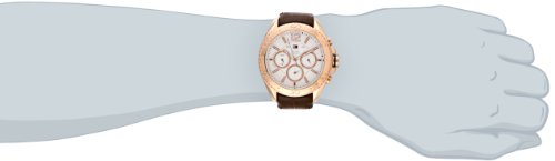 Rose gold-tone stainless steel case with a brown leather strap. Fixed rose gold-tone bezel with markers. White dial with rose gold-tone hands and index hour markers. Arabic numeral marks the 12 o'clock position. Minute markers around the outer rim. Dial Type: Analog. Luminescent hands and markers. Day, date. Three sub-dials displaying: day of the week, date and 24 hours. Quartz movement. Scratch resistant mineral crystal. Solid case back. Case diameter: 46 mm. Round case shape. Tang clasp. Water resistant at 50 meters / 165 feet. Functions: date, day, hour, minute, second. Casual watch style. Tommy Hilfiger Black Dial Black Leather Strap Mens Watch 1791031.