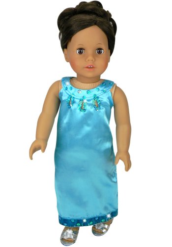 -. Feature : 18 Inch Doll Dress Up Set Made with High Quality Fabrics/Materials, Designer Doll Clothes & Affordably P.R.Iced! / Long Turquoise Satin Gown with Sequin Trim fits American Girl Dolls, Madame Alexander, Sophia's Dolls & More! / White Fur Shawl with Silver Jewel / White Elbow Length Gloves / Made by Sophia's, Leading Doll Clothes Manufacturer, Not affiliated with American Girl®, Reg. Trademark of American Girl, LLC.