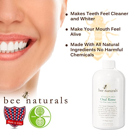 WANT WHITER TEETH? Bee Naturals Whitening Pre-Brush, Oral Rinse will whiten your teeth with regular use and with no harmful chemicals. GENTLY WHITENS TEETH - Bee Naturals Whitening Pre-Brush Oral Rinse gently whitens teeth and aids in thorough cleaning of teeth and mouth with regular use. This natural formula contains no alcohol or artificial sweeteners, color or preservatives.