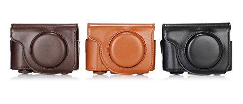 -. Feature : 表面も内面も非常に綺麗で、縫製もちゃんとしています / 専用セパレート式ケース(ボディケース&レンズカバー) / 高級のPUレザーで作られ、デザインや色合いも含め作りは十分に実用に耐える物 / カメラ全身を保護しているため安心感があり、見た目もすごくかっこいい / ボディケースを装着したまま三脚を使用できます