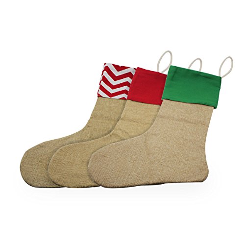 Set of 3 Christmas Stockings Large Size Plain Burlap Stocking Christmas Decor for Personalized DIY Fireplace Decor