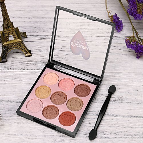 -. Binding : Misc. -. Brand : Hosamtel-Makeup -. Color : 120 Colors -. Feature : ❀ 9 Colors Matt Makeup Eyeshadow Palette to match your every look. Using the most commonly applied shades, ensures the best skin color to match and guarantees a flawless and natural finish. / ❀ High-quality ingredients, deeply pigmented last you for all day long with P.R.Imer or not. 9 Fantastic Colors Natural Eyeshadow Palette will take you through every season. Suitable for all skin types and for the party, daily life and makes you more fantastic and sexy. / ❀9 colors cosmetic eyeshadow palette suits for different occasions, like casual, salon, party, wedding etc. Perfect gift for girls, ladies, women, on her birthday, christmas day, mother's day, valentine's day etc. / ❀ With small size easy-to-carry design, you can take the professional eyeshadow palette everywhere even when you are in travel. Convenient to storage in your bag and carry with you everywhere. Elegance is the only beauty that never fades in your journey. / ❀ If for any reason you are not satisfied with your purchase, please contact us because our number one goal is customer satisfaction and we are committed to making it right for you. -. IsAdultProduct : 0 -. Label : Hosamtel -. Manufacturer : Hosamtel -. MPN : lameila 9 -. PartNumber : lameila 9 -. ProductGroup : Beauty -. ProductTypeName : BEAUTY -. Publisher : Hosamtel -. Studio : Hosamtel -. Title : Pearl Glitter+Matt Eyeshadow Palette Hosamtel 9 Colors Love Heart Pattern Natural Smooth High Pigmented Eye Shadows Powder + Double Eended Cosmetic Brush Make-up Tool Best Valentine Day Gift