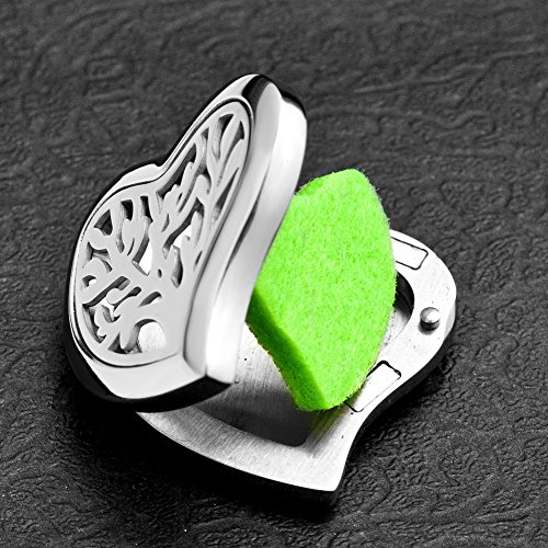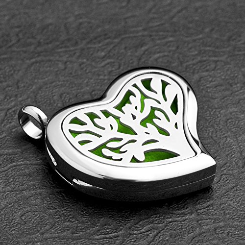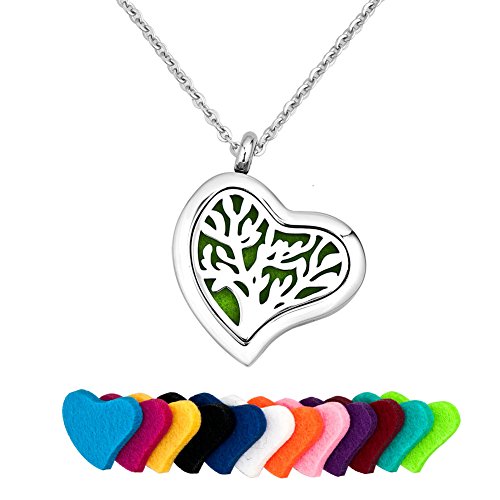 Third Time Charm Family Tree Of Life Essential Oil Diffuser Necklace Heart Locket Aromatherapy Jewelry, 12 Refill Pads