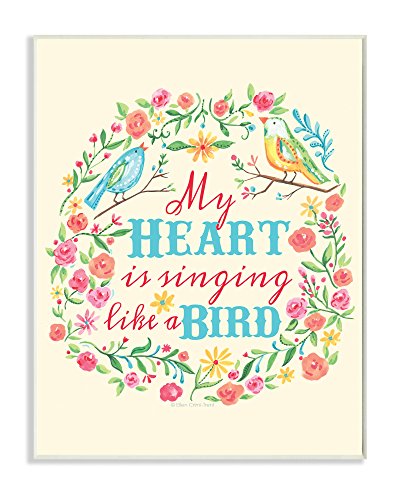 Stupell Home Décor My Heart Is Singing Like A Bird Floral Graphic Art Wall Plaque, 11 x 0.5 x 15, Proudly Made in USA