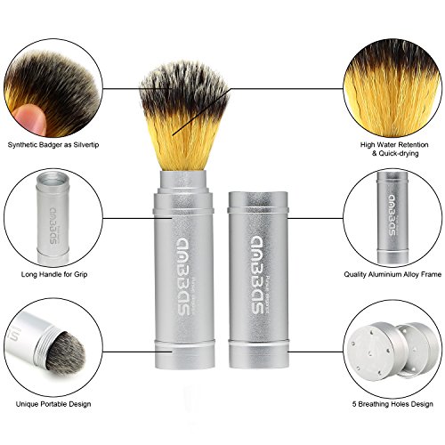 Travel Shaving Brush, Anbbas Faux Badger Hair Shaving Brush Large with Aluminum Handle, Portable Perfect for Travel Home(Silver)