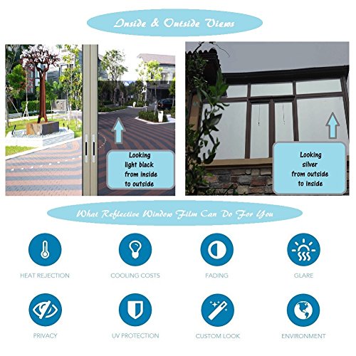 23.6-Inch by 6.5-Feet (60cm×200cm) Privacy Sun Control and Heat Rejection Window Glass Tinting Film, Black & Silver