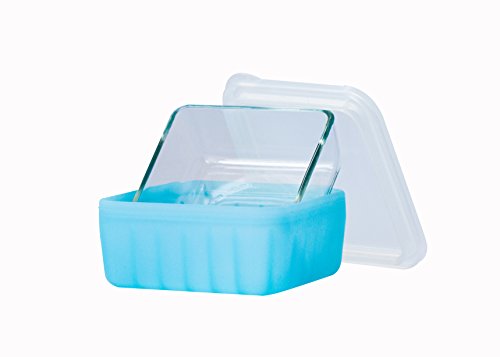 Made up of two parts, 2 cup glass bowl nestled inside a cushioning food-grade silicone sleeve