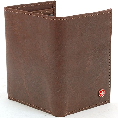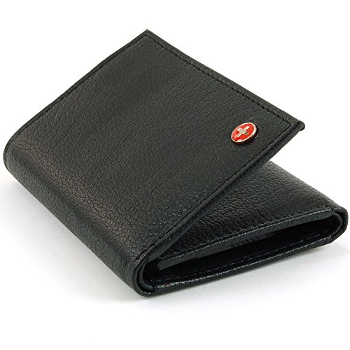 A classic trifold men's wallet style. Made of soft Superb Quality Lambskin Leather. Features Alpine Swiss Logo inside Cross Mark Outside and comes in a cotton gift bag.