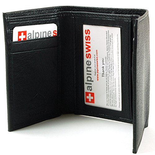 Alpine Swiss Men's Genuine Leather Trifold Wallet Black