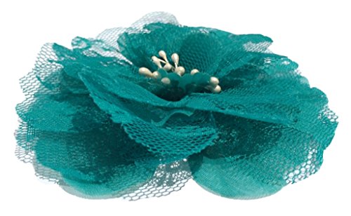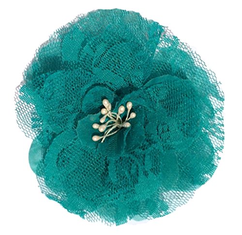 Cuteque International Victorian Lace Rose with Plastic Center Pearl Stamens, 4-Inch, Teal, 3-Pack