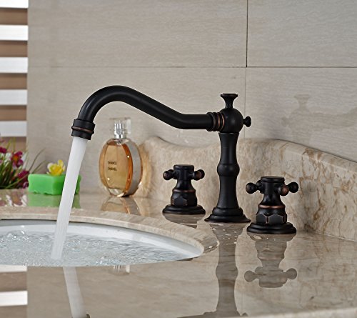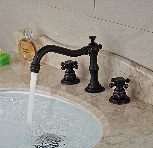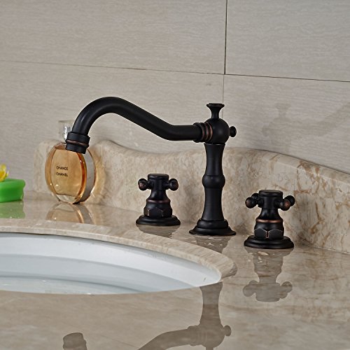 -. Title : Rozin® Widespread 3 Holes Bathroom Sink Faucet Dual Cross Knobs Mixer Tap Oil Rubbed Bronze