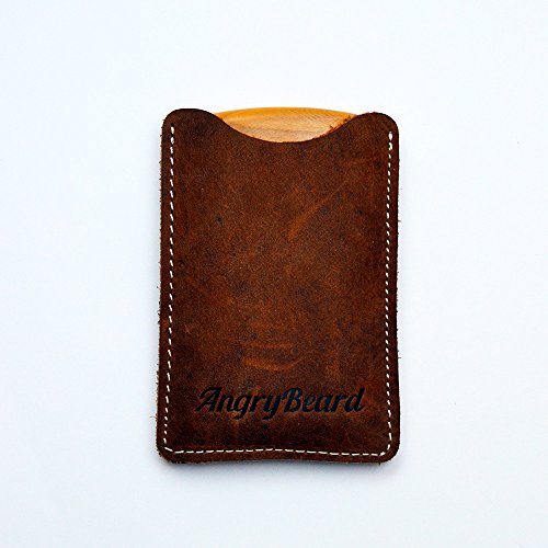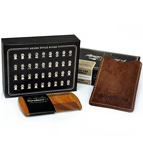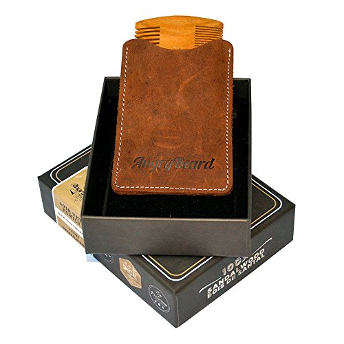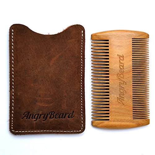 Mens Beard Comb with leather Case Angrybeard two sided beard comb & Mustaches Comb Sandal Wood Pocket Comb & Case, Dual Action Fine & Coarse...
