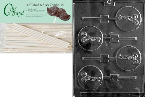 Cybrtrayd 45St25-S044 Weight Lifter Lolly Sports Chocolate Candy Mold with 25-Pack 4.5-Inch Lollipop Sticks