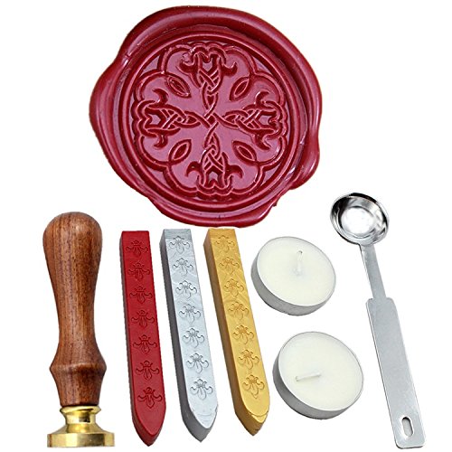 FQL Decorative Pattern Vintage Rosewood Wax Seal Stamp Gift Set With Gold Red Silver Sticks